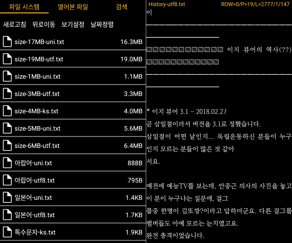 아랍어랑 일본어도 테스트해봤는데 잘되네요. ^^ 모바일용 이지뷰어 앱을 만들기 시작한지 벌써 1주일이 지났습니다.