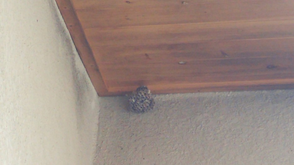 집앞 처마에도 진흙으로된 말벌집을 발견했습니다.