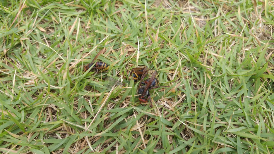 정원 잔디밭위로도 말벌들이 하나둘 떨어지기 시작했습니다.