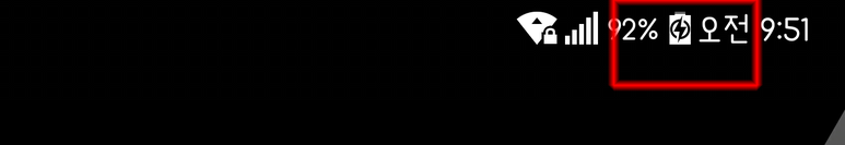 고속충전여부는 스마트폰 상단의 충전표시아이콘을 보면 알 수 있습니다.