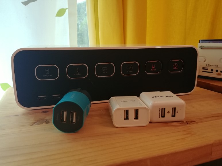 가족들 폰 4개, 테블릿 PC, 블루투스 스피커, 블루투스 헤드셋등을 충전하려고 보니, 일반 1구짜리 충전기가 아닌 듀얼충전기로도 4개나 필요하더군요.