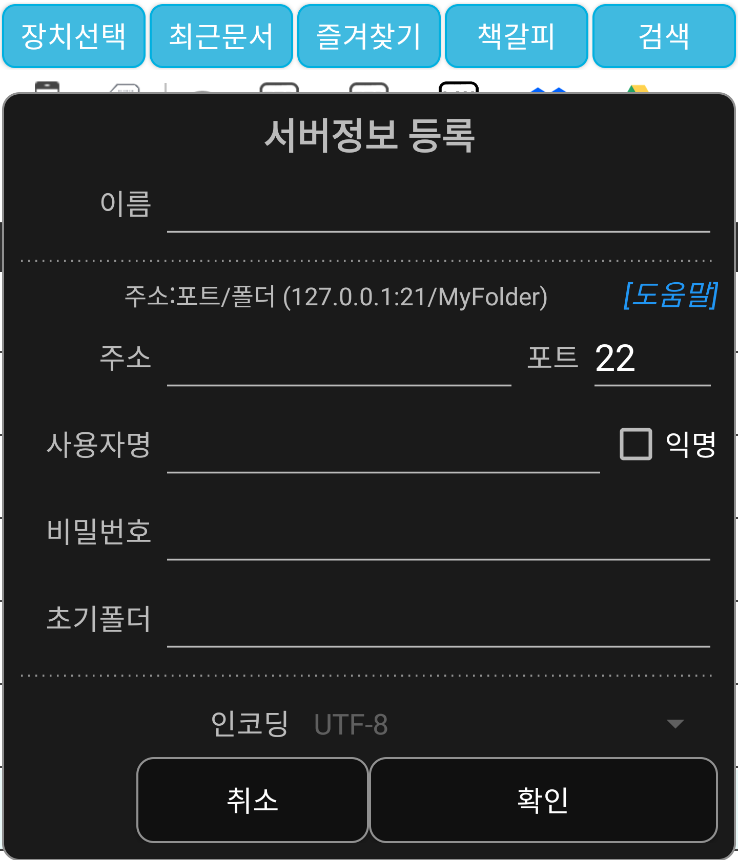 주소 입력란에서 주소/포트/초기폴더등의 정보를 한번에 입력할 수 있습니다.